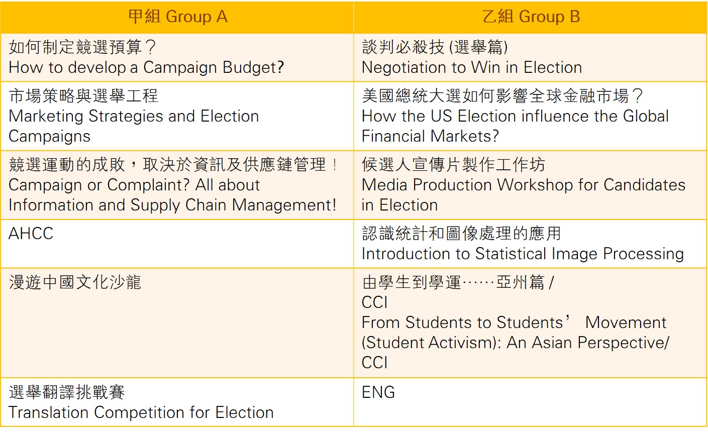 恒管暑期體驗組別 Groups of HSMC Summer Academy 2017